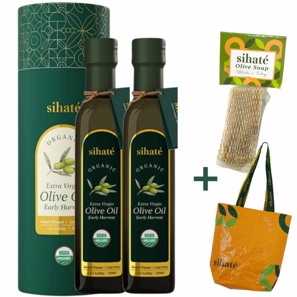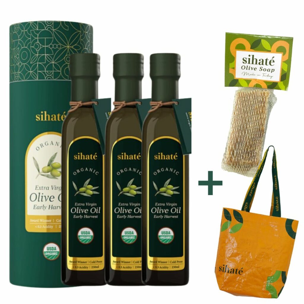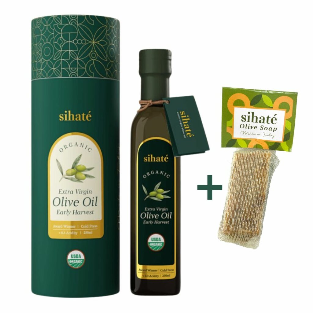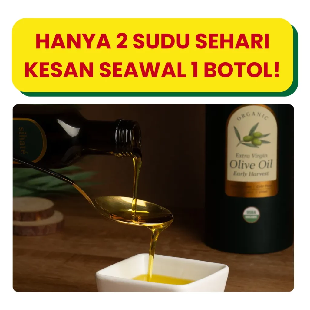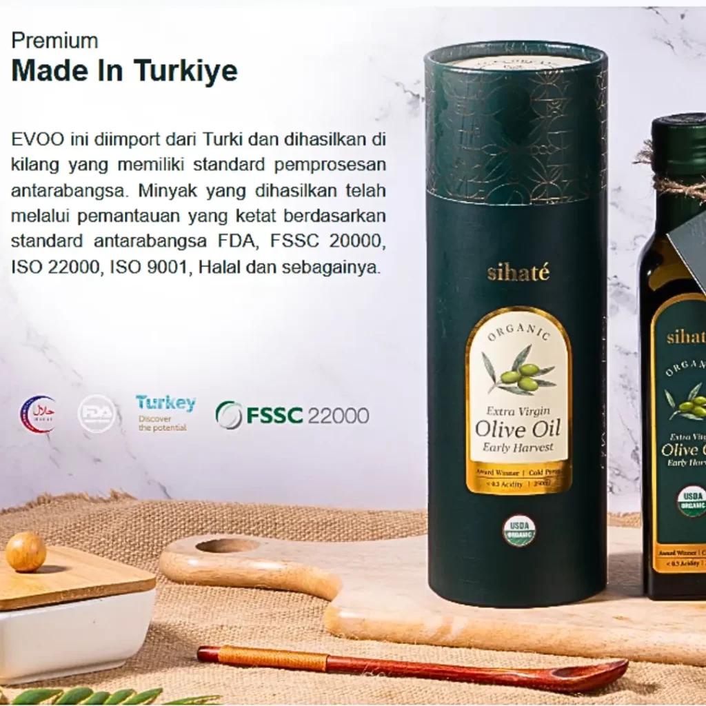 EVOO Sihaté adalah Extra Virgin Olive Oil berkualiti premium yang dihasilkan daripada buah zaitun yang dituai awal di Turki, di mana proses perahan sejuk digunakan untuk memastikan kualiti minyak terbaik.