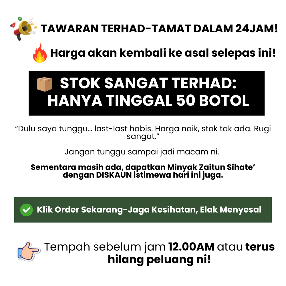 MONEY BACK GUARANTEE 100% jika ANDA merasakan EVOO Sihaté tidak sedap atau anda rasa membazir duit membeli EVOO Sihaté ini yang langsung tidak membantu anda.